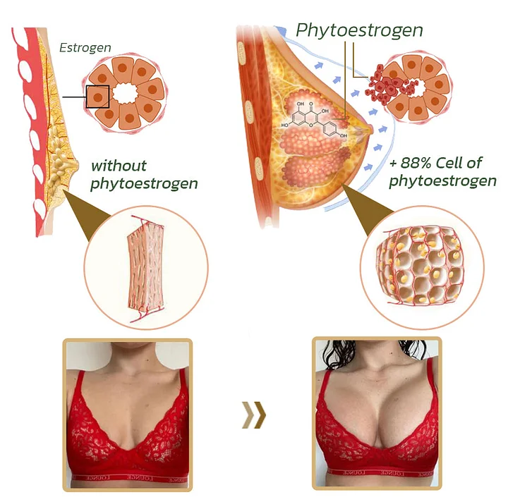 A fitoösztrogének a növényekben természetesen előforduló anyagok, amelyek utánozhatják az emberi ösztrogén hormont . Számos növényben megtalálhatók, beleértve a Pueraria Mirificát és a Papayát is . Amellett, hogy számos biológiai rendszerre hatással lehetnek és egészségügyi előnyöket kínálnak, a fitoösztrogének képesek kötődni az ösztrogénreceptorokhoz, növelve a mell méretét, a bőr rugalmasságát és feszességét a mell területén.